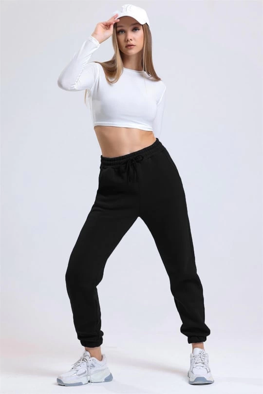 3 iplik şardonlu paça lastikli eşofman siyah is001