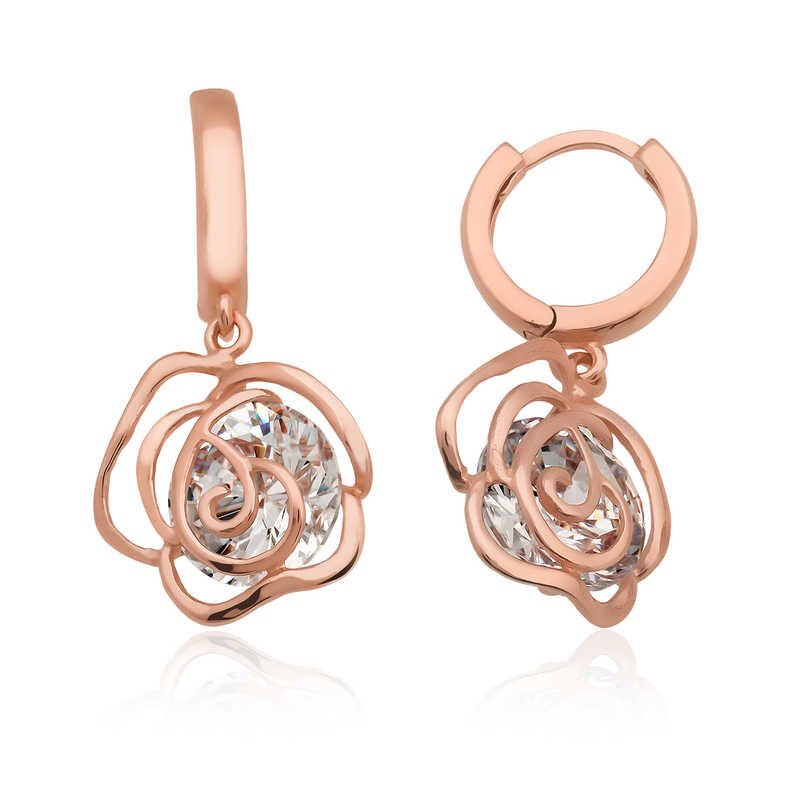 925 Ayar Gümüş Sallantılı Gül Küpe Ea1160200 (1077)