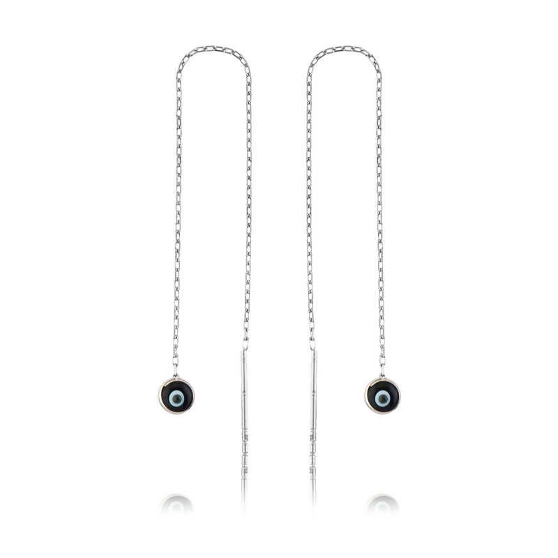 925 Ayar Gümüş Zincirli Lacivert Nazar Küpe Ea1160041 (1077)