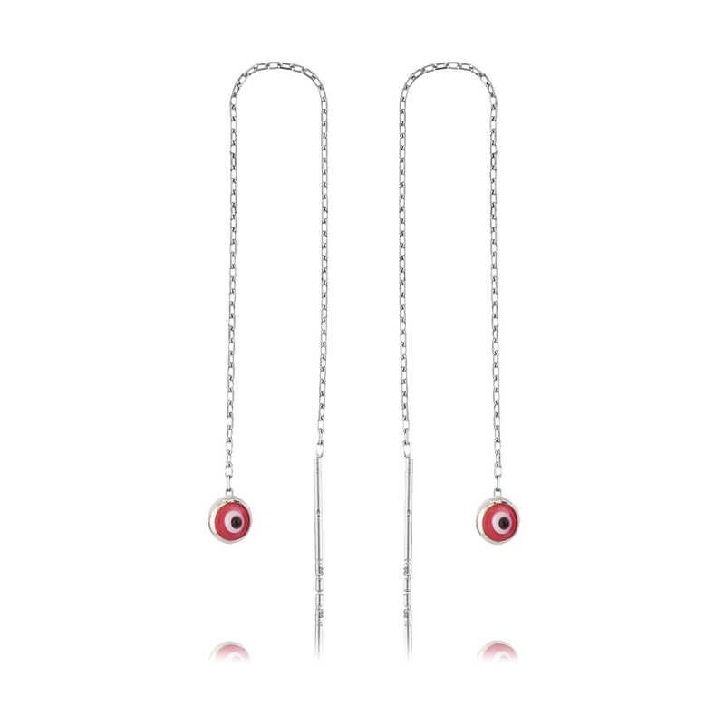 925 Ayar Gümüş Zincirli Pembe Nazar Küpe Ea1160042 (1077)