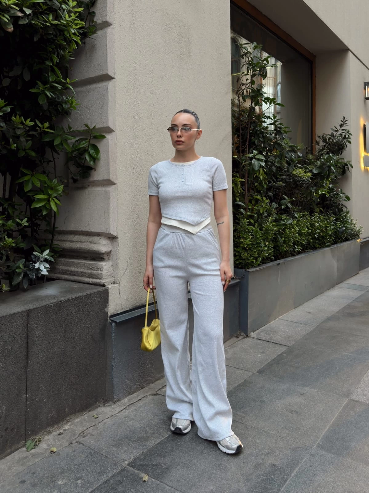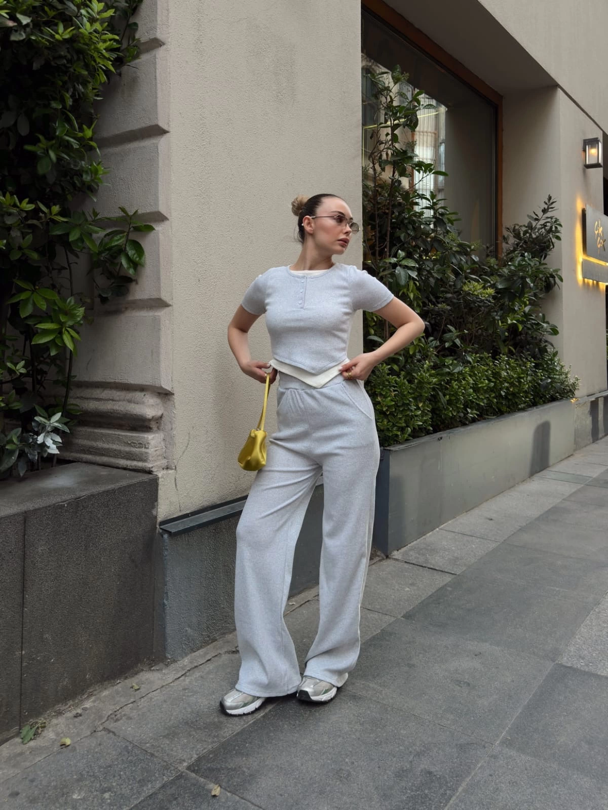 Düğme yakalı gri alt üst takım s3943