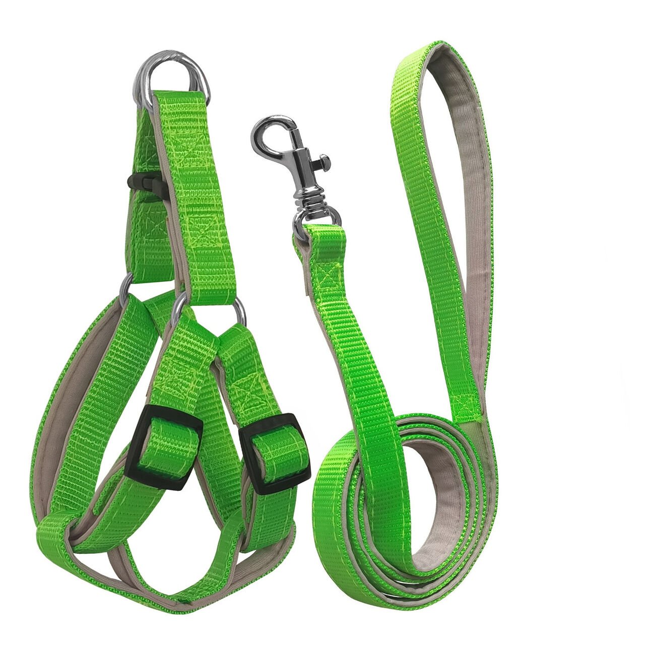Gezdirme Kayışlı Dokuma Köpek Göğüs Tasma Seti 52*73-110 cm Neon Yeşil