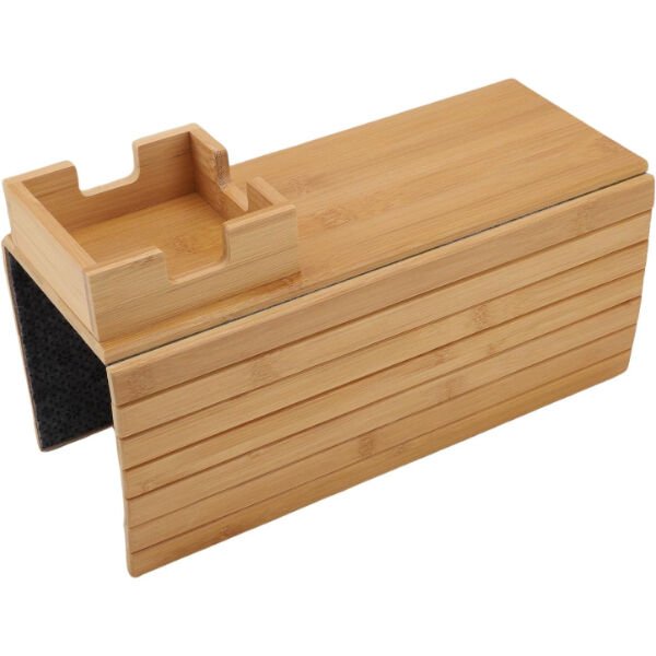 Katlanabilir ahşap koltuk yanı kanepe tepsisi, kol dayama kısmını pratik bir servis alanına dönüştürmek için tasarlanmış kullanışlı bir ev aksesuarıdır. Esnek ve katlanabilir 32x33 cm boyutundaki yapısı sayesinde farklı genişlikteki koltuk ve kanepelere kolayca uyum sağlar. Ahşap yüzeyi içecek, atıştırmalık, kumanda veya telefon gibi eşyaları sabit bir zemin üzerinde kullanmanıza imkân tanır. Üst kısmında yer alan özel bölmeli alan sayesinde kupa veya bardak daha dengeli şekilde konumlandırılabilir. Koltuk yanı tepsi tasarımı ile sehpa ihtiyacını azaltır ve dar alanlarda pratik çözüm sunar. Katlanabilir kanepe tepsisi kullanılmadığında düz şekilde katlanarak kolayca saklanabilir. Doğal ahşap görünümü ile dekorasyona uyum sağlar ve hem oturma odasında hem de çalışma alanlarında işlevsel kullanım sunar. Ahşap koltuk kol dayama tepsisi, evde konforlu ve düzenli bir kullanım deneyimi sağlar.