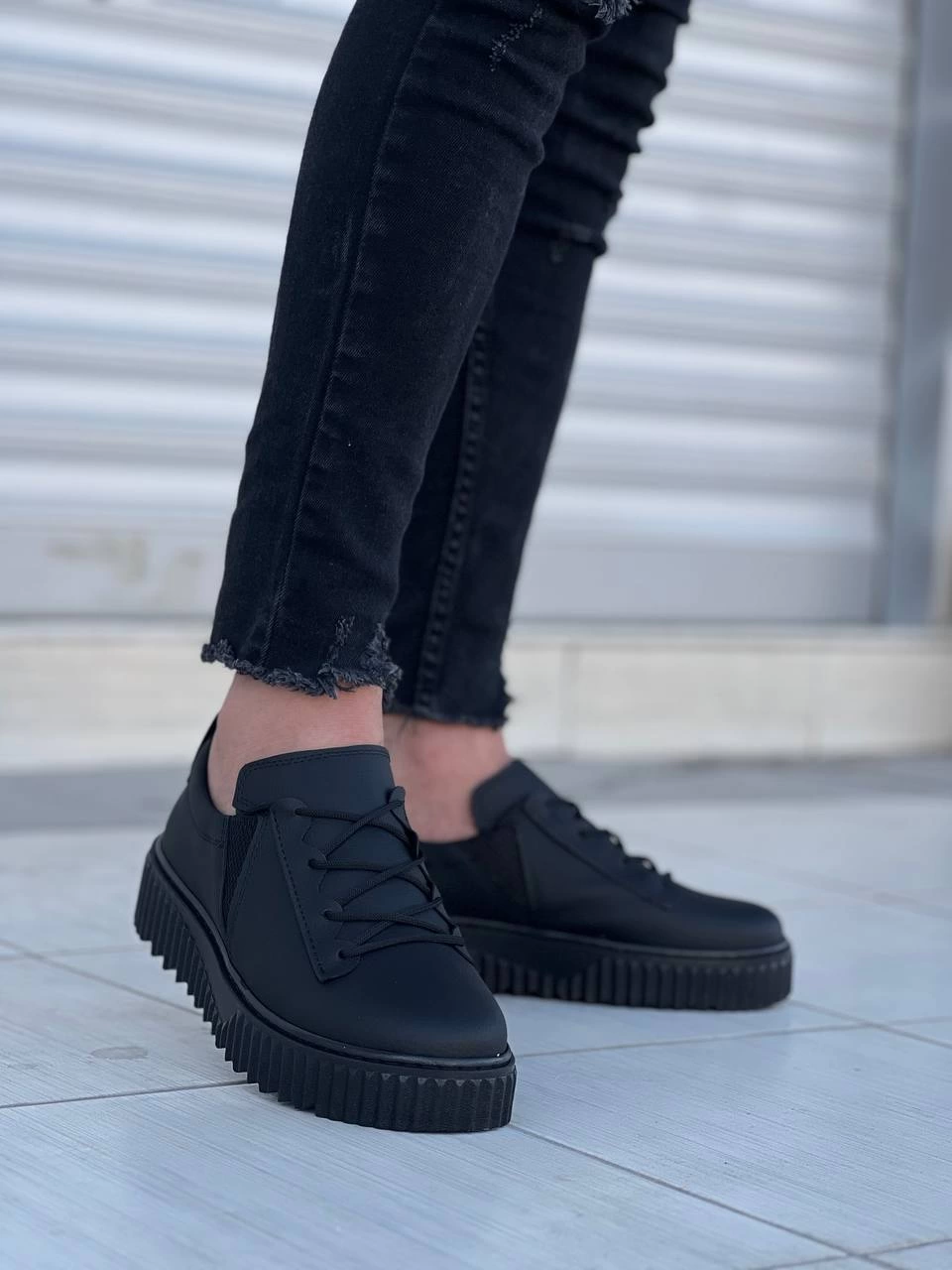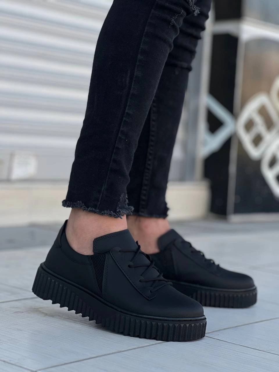 KB-X502 Kuback Siyah Cilt Yüksek Siyah Taban Bağcık Detaylı Lastikli Günlük Erkek Ayakkabı