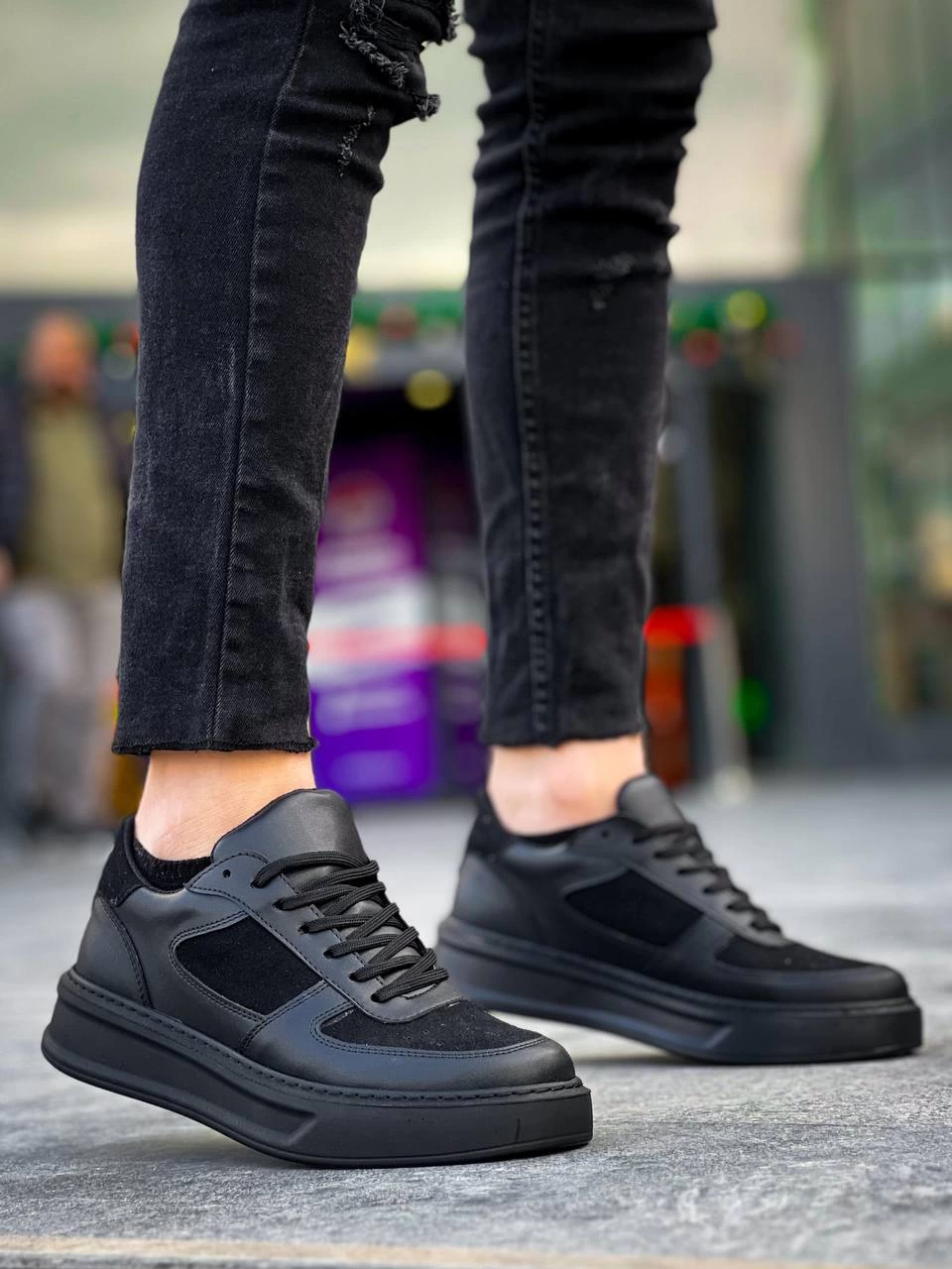 KB-X8 Kuback Siyah Cilt Siyah Süet Detaylı Siyah Yüksek Taban Günlük Spor Ayakkabı