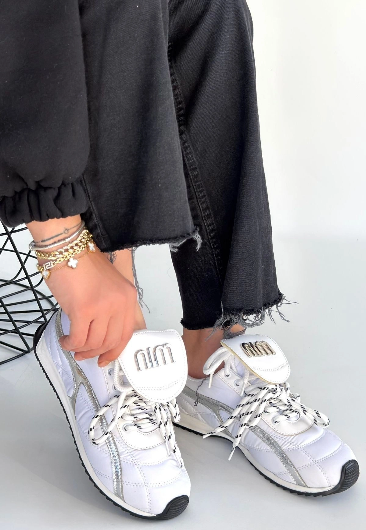 Dissa Beyaz Cilt Bağcıklı Paraşüt Detaylı Spor Ayakkabı